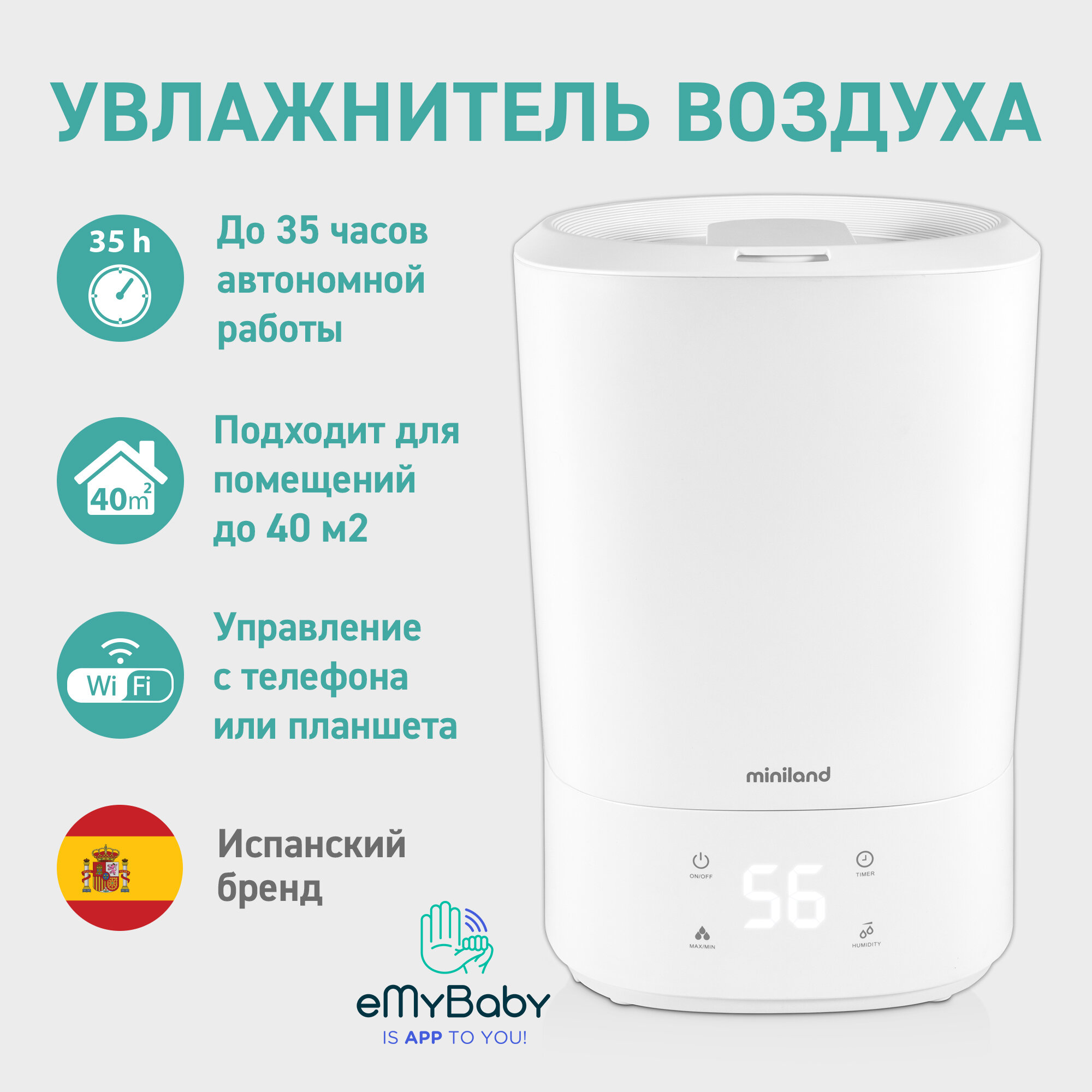 Увлажнитель воздуха Miniland Humitop Connect 89318 интересное: