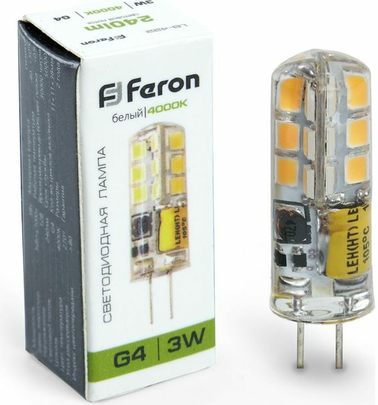 Лампа светодиодная Feron 25532 LB-422 3Вт G4 4000K 12В силикон