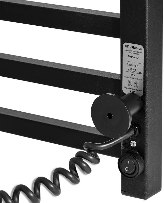 Электрический полотенцесушитель Laris Астор ЧКЧ П12, 350х900 мм, 180 Вт, правое подключение, цвет: чёрный матовый (ral 9005), с креплением, 73207665