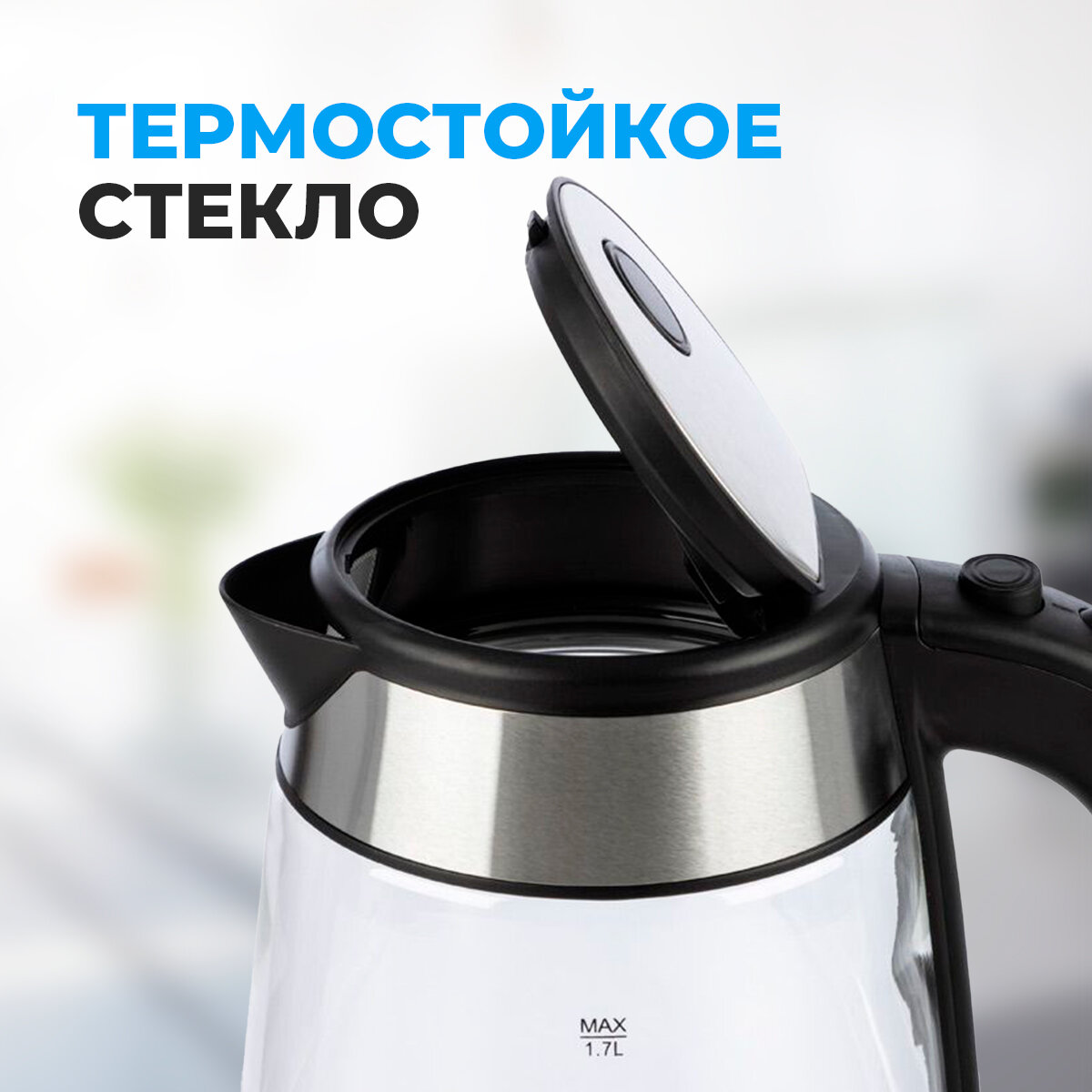 Чайник 1,7л ENERGY черный (стекло/пластик)