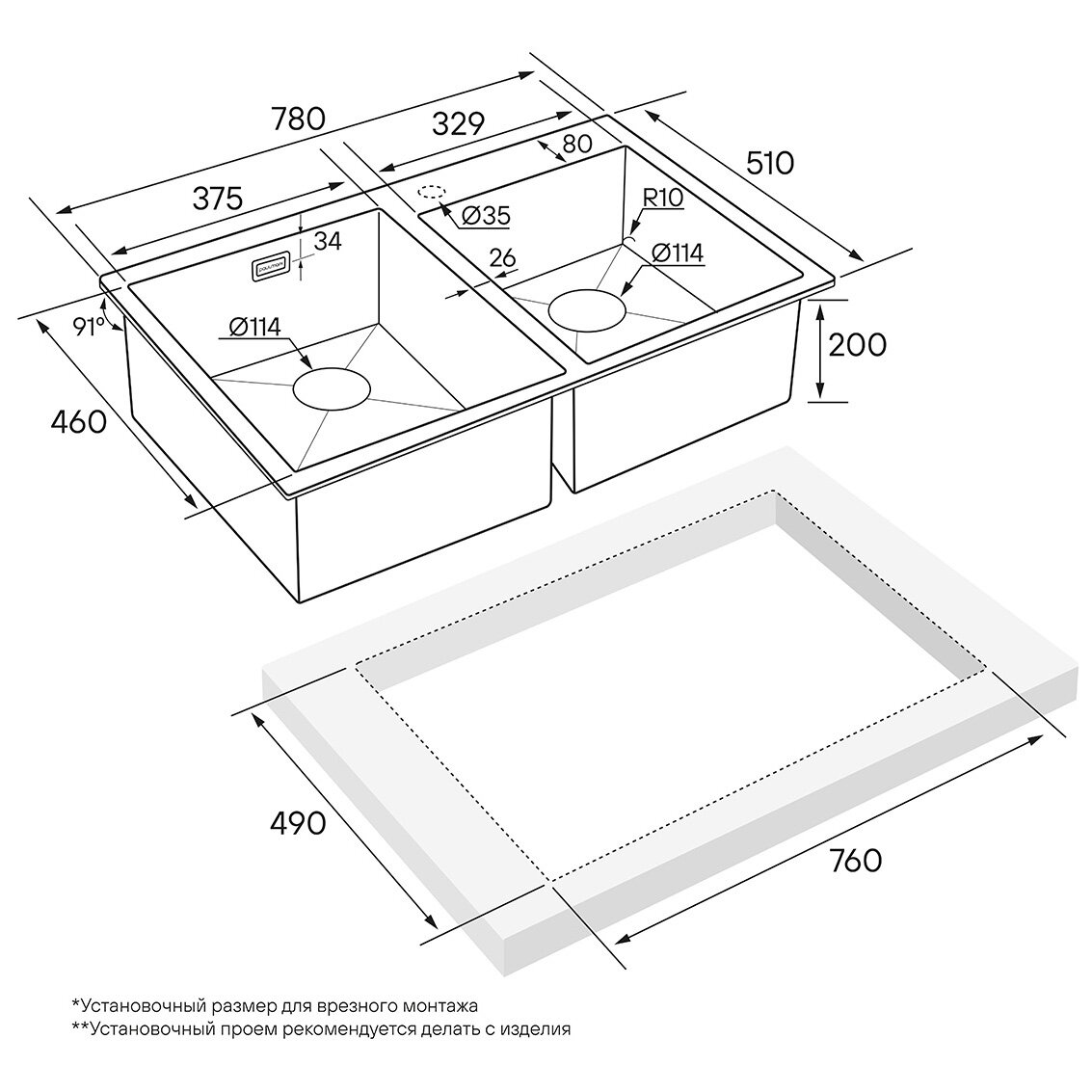 | Установка | врезная / накладная |