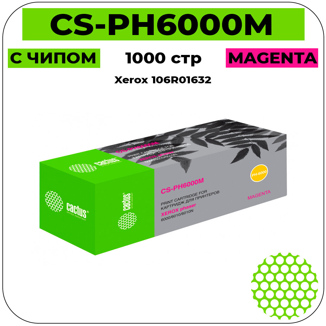 Картридж лазерный CACTUS (CS-PH6000M) для XEROX Phaser 6000/6010N, пурпурный, ресурс 1000 стр.