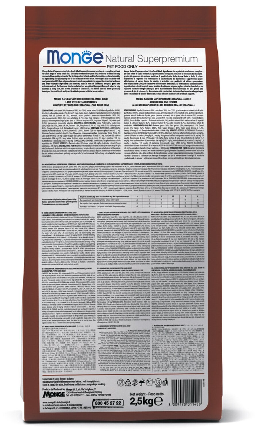 Купить Корм для щенков MONGE Monoprotein Mini мелких пород с ягненком и рисом 2.5кг