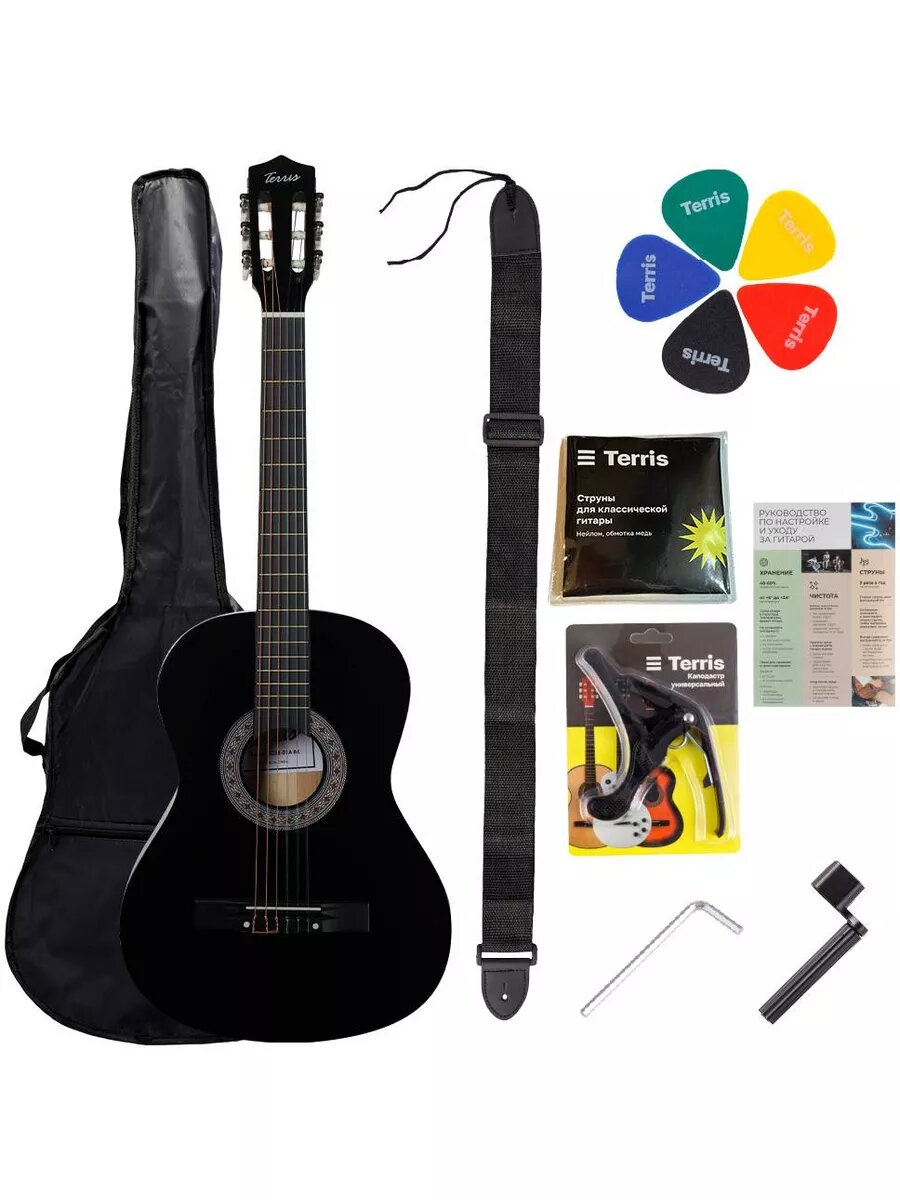 Купить TERRIS TC-038 BK Starter Pack набор начинающего гитариста: классическая гитара черного цвета и ком
