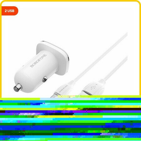 Автомобильное заряд. устр. Borofone BZ12 с шнуром Lightning 2USB 2.4A белое