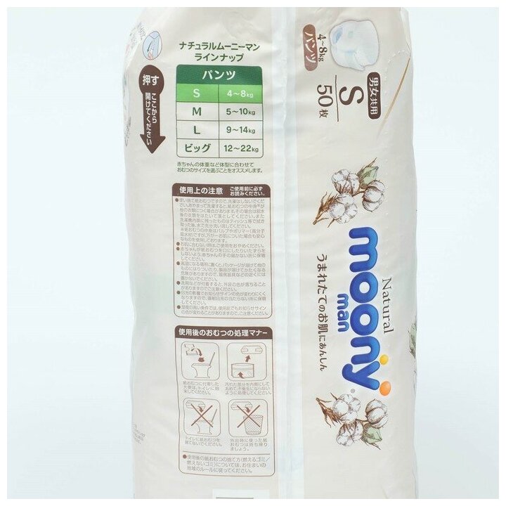 Подгузники - трусики Moony MAN Natural, S (4-8 кг), 50 шт.