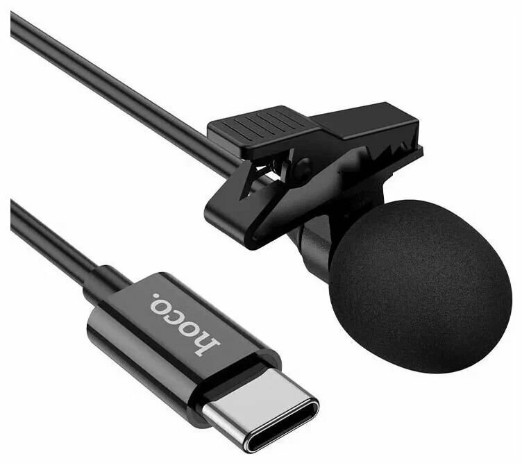 Микрофон-петличка Hoco L14 на клипсе, проводной с разъемом USB Type-C, чёрный