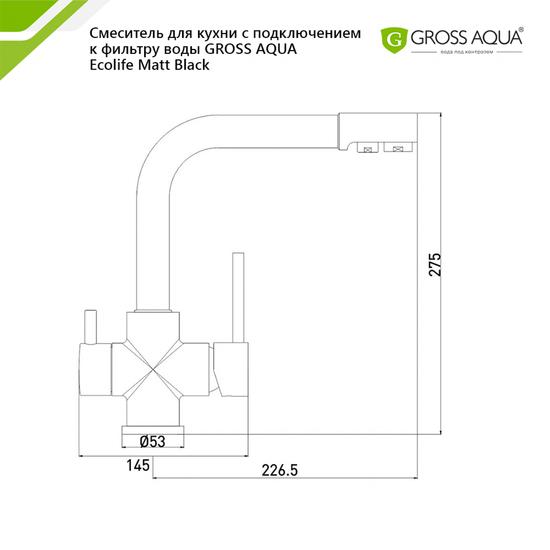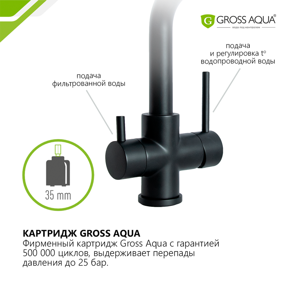 Смеситель GROSS AQUA Ecolife Черный с подключ. к фильтру питьевой воды 3120609MB