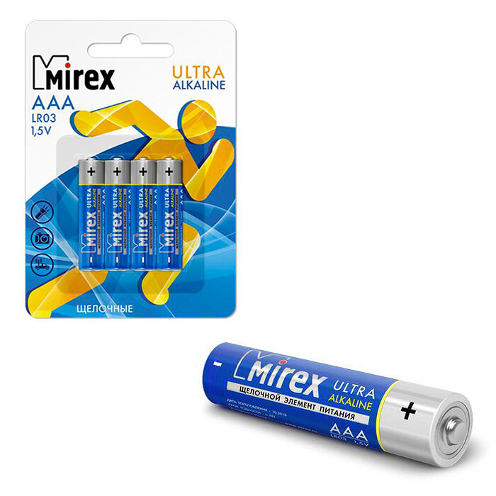 Батарея щелочная Mirex LR03/AAA 1,5V, 4 шт, блистер (23702-LR03-E4)