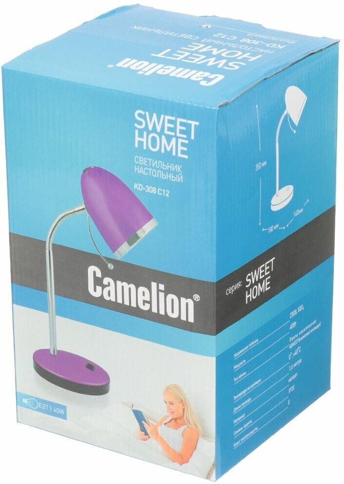Ниже Вы можете прочитать отзывы на Camelion KD-308 C12 фиолетовый (Светильник настольный,230V 40W E27) ., ознакомится с подробными характеристиками, посмотреть интересные обзоры и фотографии на Camelion KD-308 C12 фиолетовый (Светильник настольный,230V 40W E27) ..
