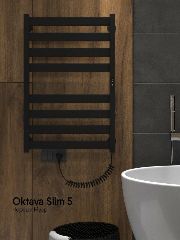 Полотенцесушитель Oktava Slim 5 электрический 60/50 таймер, скрытый монтаж, универсальное подключение, Черный муар INDIGO