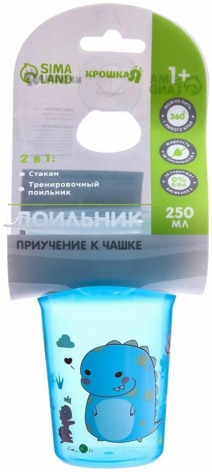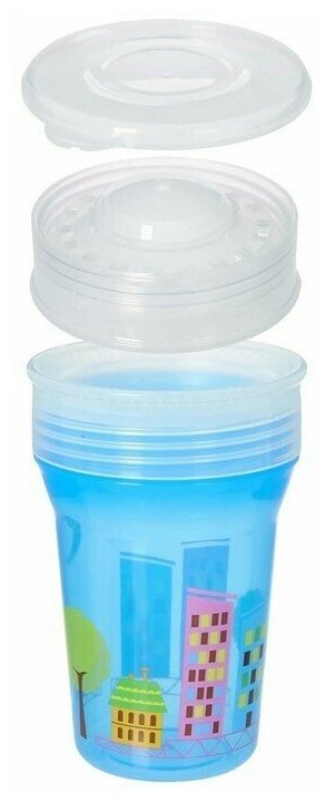 Тренировочный поильник-стакан 2 в 1, непроливайка 360 градусов, 250 мл., цвет голубой интересное: