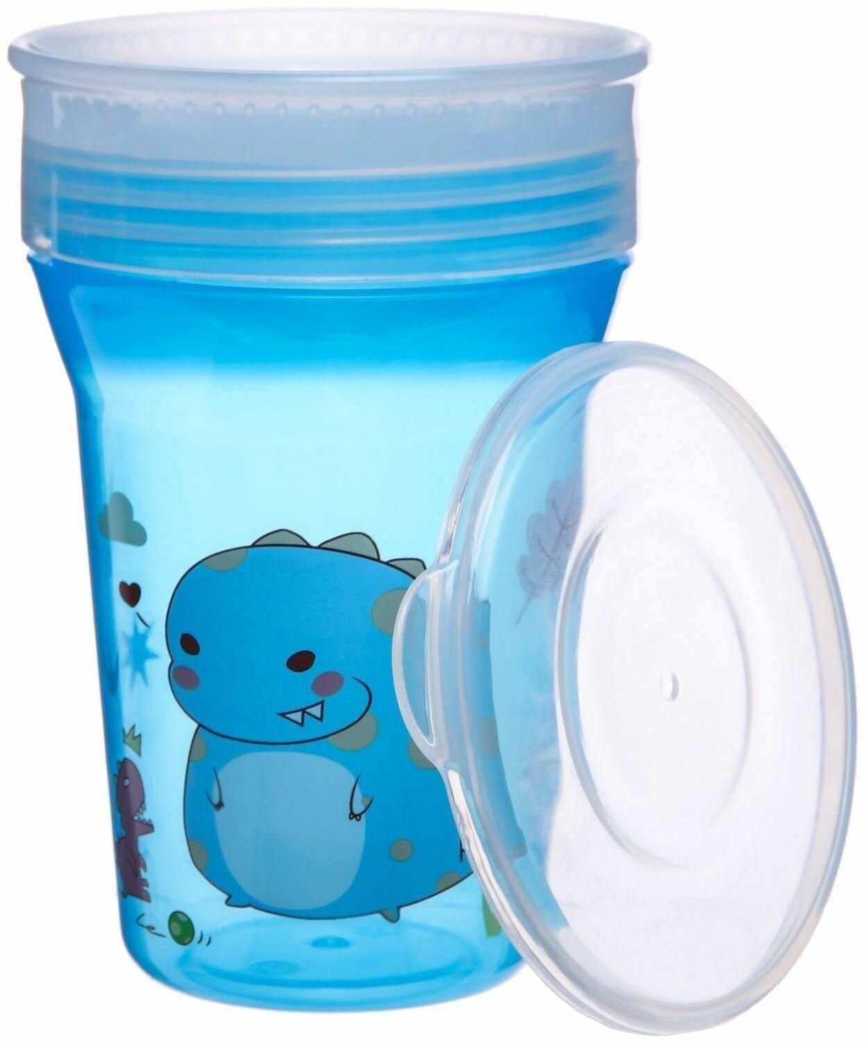 Купить Тренировочный поильник-стакан 2 в 1, непроливайка 360 градусов, 250 мл., цвет голубой