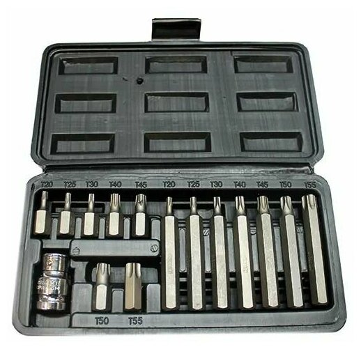 Набор бит (вставок) 15 пр. TORX Т20-Т55 с центральным отверстием автодело 40644