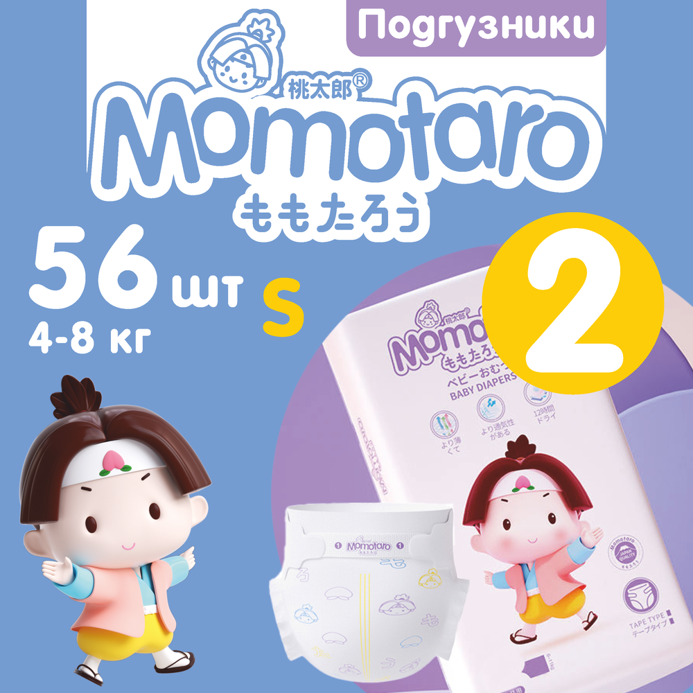 Купить Детские подгузники Momotaro 2/S (4-8 кг), 56 шт.