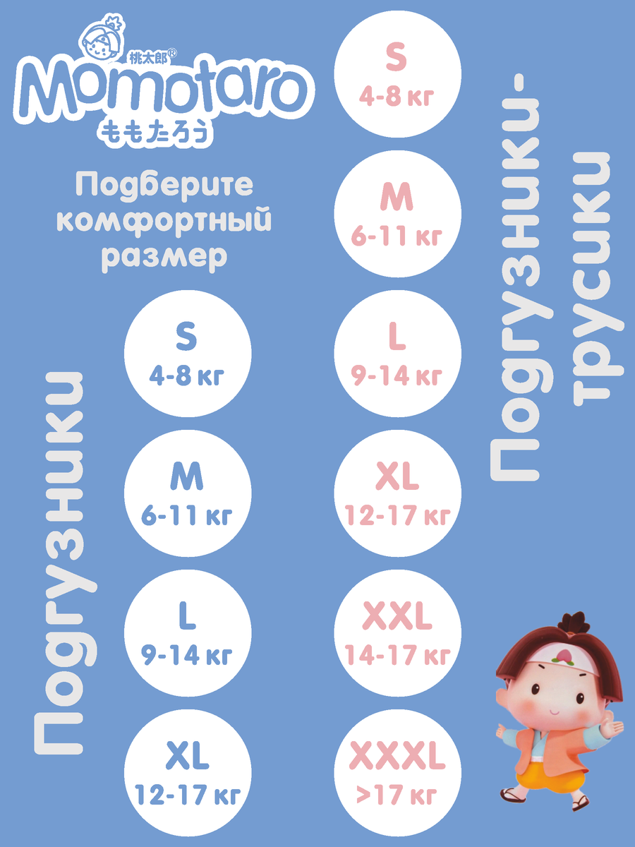 Детские подгузники Momotaro 5/XL (12-17 кг), 38 шт. интересное: