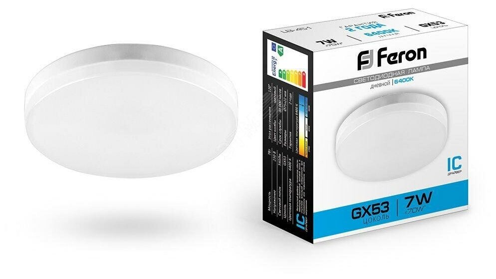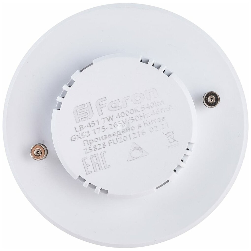 Лампа светодиодная LB-451 GX53 7W 6400K, FERON 25866 (1 шт.)