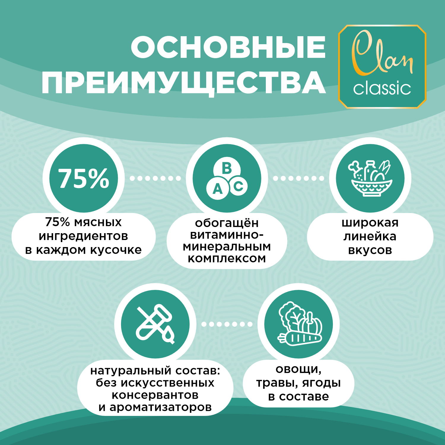 СохранитьВлажный корм Clan CLASSIC для кошек, утка с брусникой и морковью, кусочки в соусе, 14шт*85г интересное: