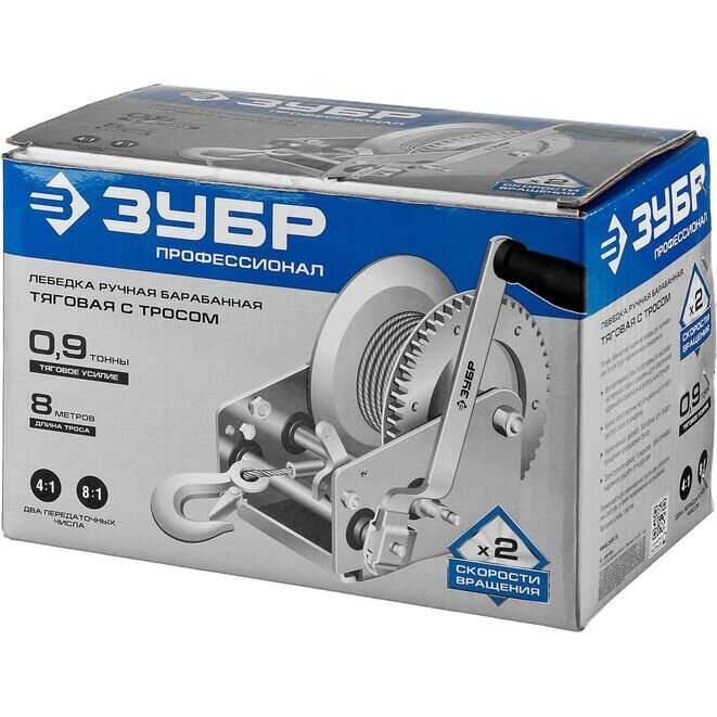 Лебедка ручная барабанная ЗУБР "Профессионал", тяговая, тросовая, 0.9 т, 8 м интересное: