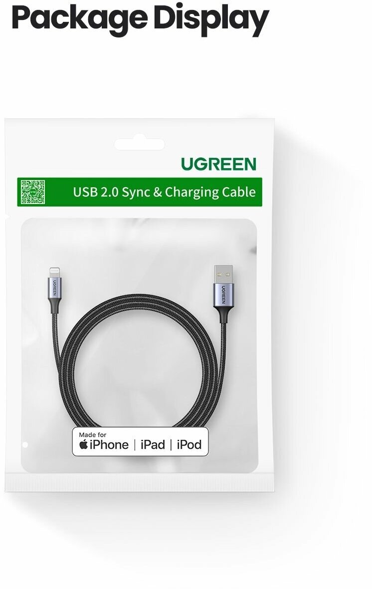 Кабель UGreen US199 USB 2.0 - Lightning, 1.5 м, 1 шт, черно-серый