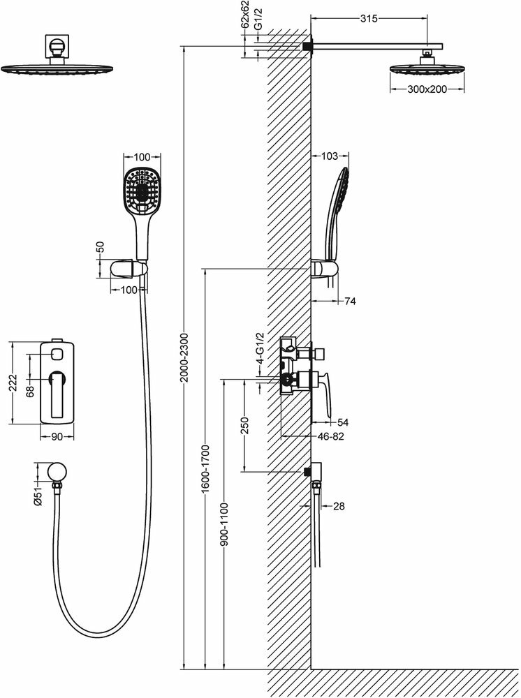 | Комплектация | верхний душ / шланг |