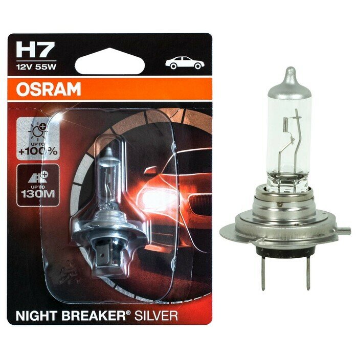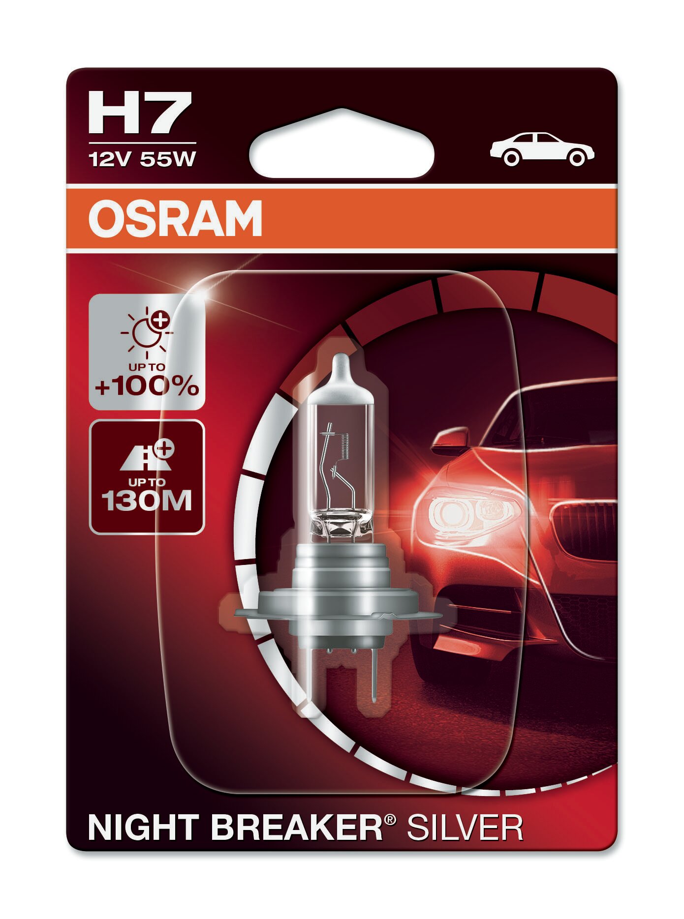 Лампа h7 12v 55w px26d night breaker silver +100% больше света 1 шт. Osram 64210NBS01B