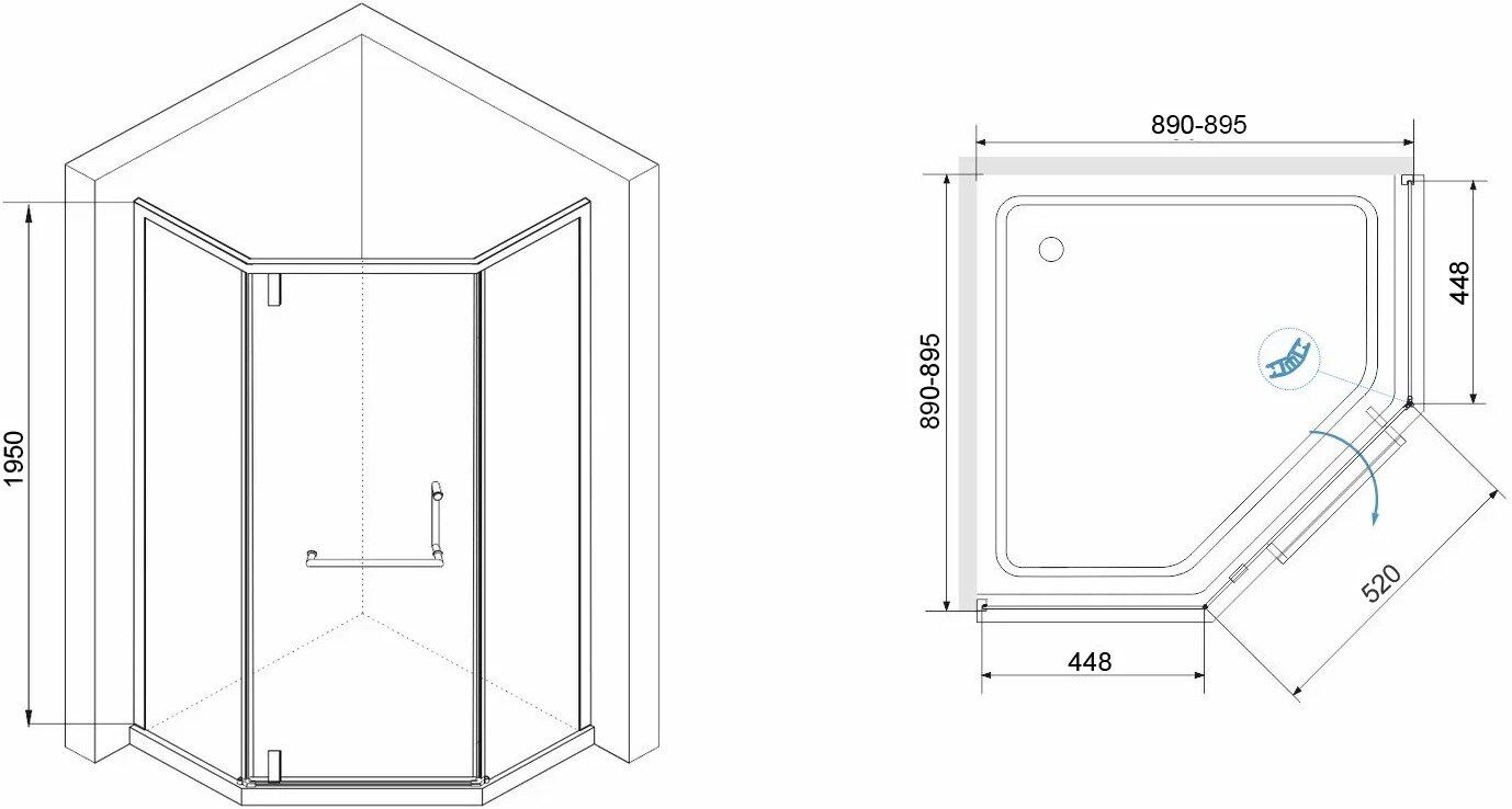 Душевой уголок RGW Hotel HO-084-W 90x90x195 см, профиль белый, стекло прозрачное 350608499-15