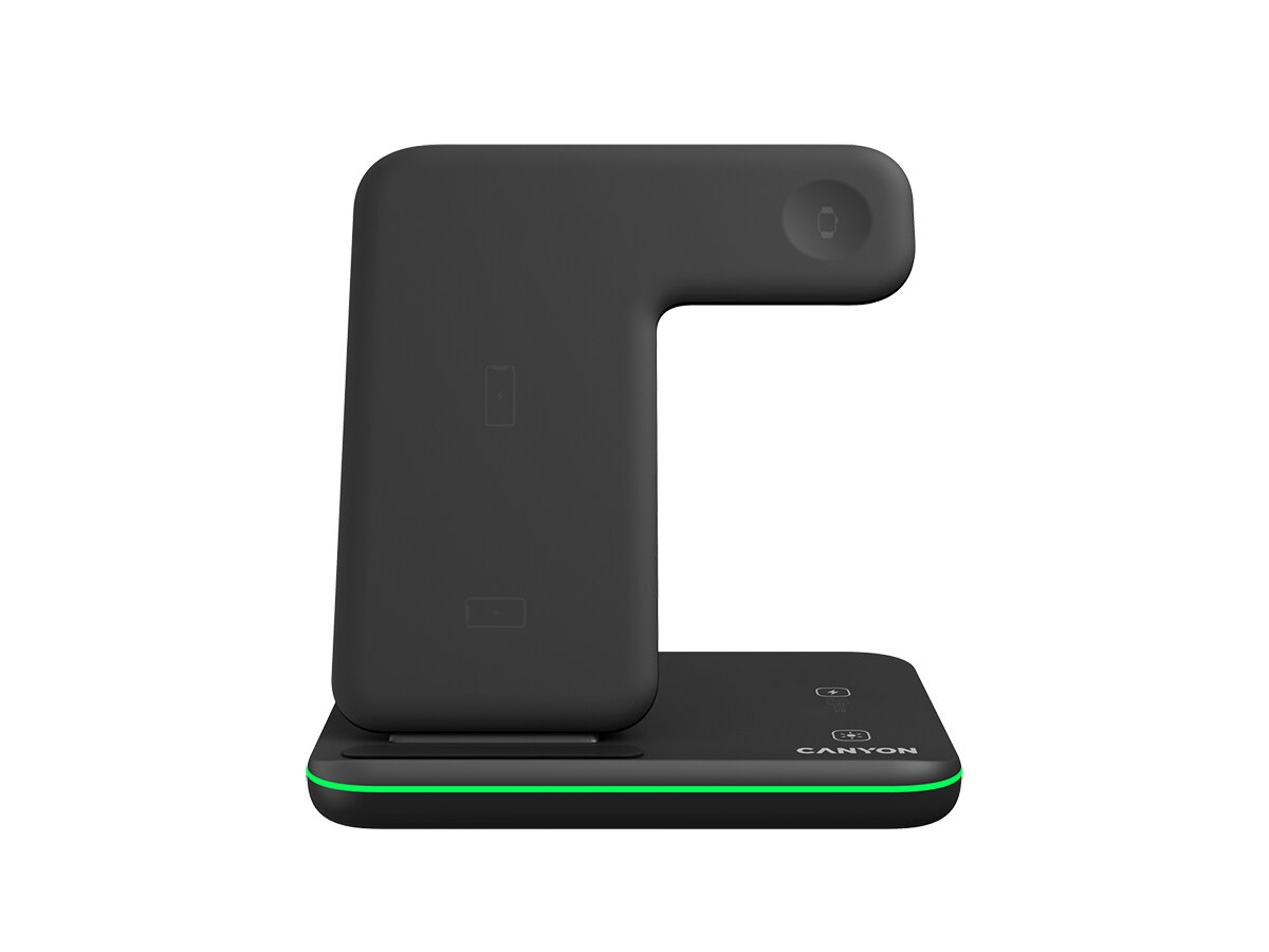 Беспроводное зарядное устройство 3 в 1 Canyon WS-303, с поддержкой Qi. до 15Вт, Черный, CNS-WCS303B