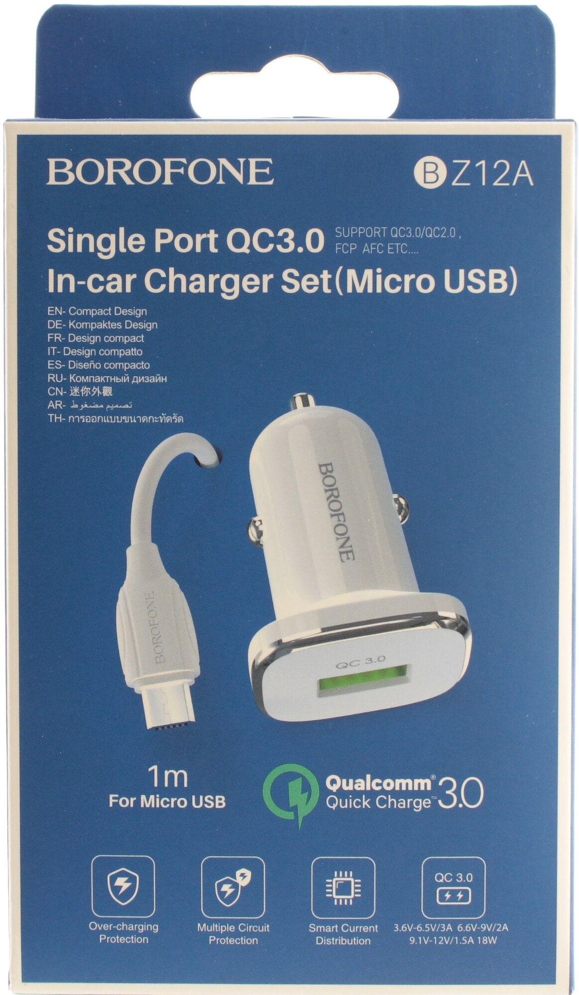 Купить Автомобильное зарядное устройство BOROFONE BZ12 Lasting Power, 2.4A + кабель microUSB, 1м, белый