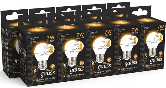 10 штук Лампа светодиодная Gauss Globe E27 7Вт 3000К