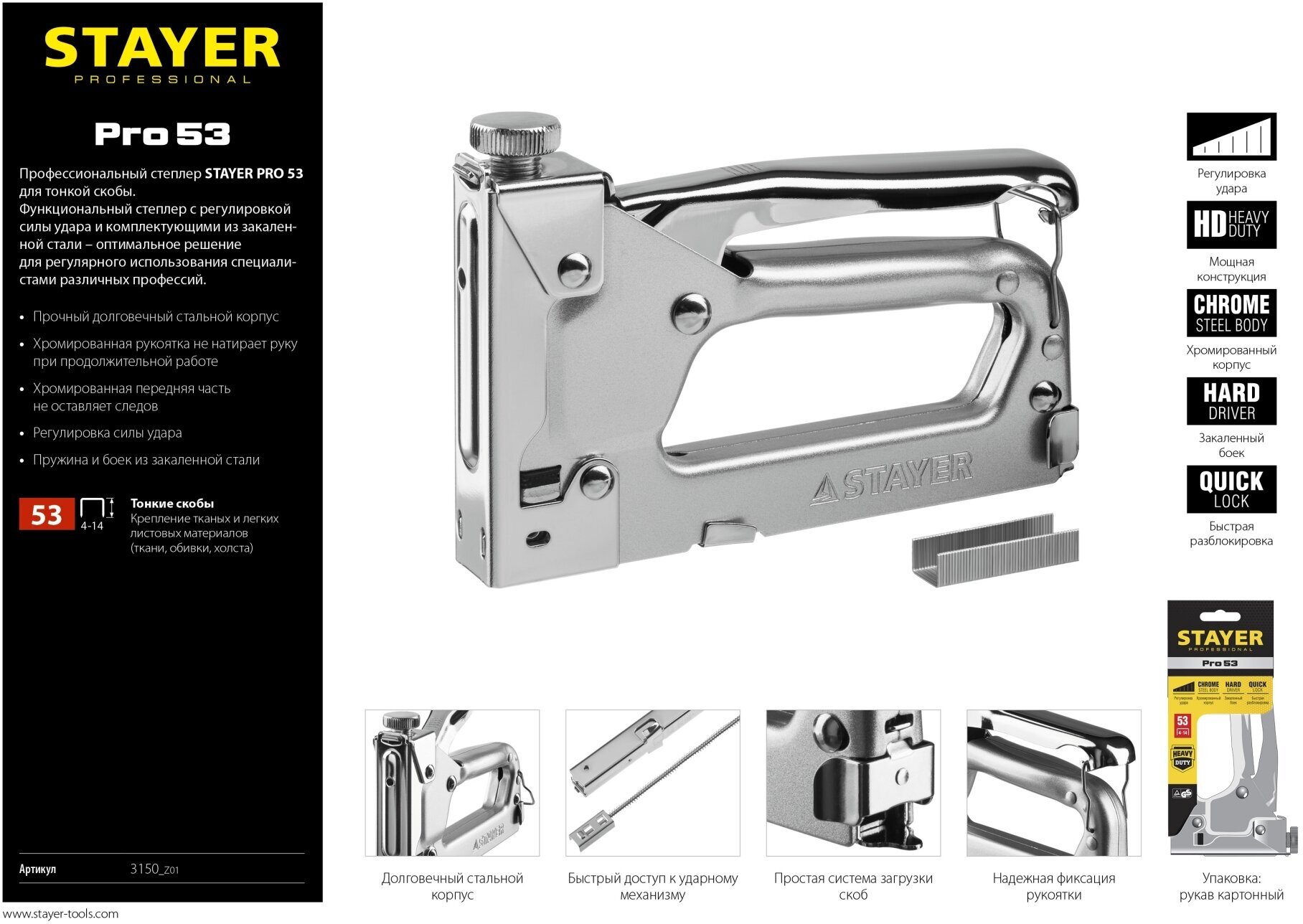 Стальной cтеплер STAYER Pro-53 тип 53, 3150_z01