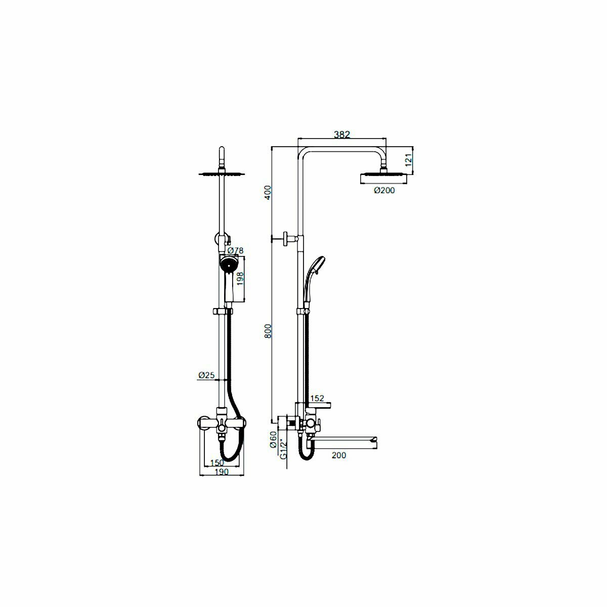| Дополнительная информация | минимальная высота стойки 80 см, максимальная высота стойки 120 см, размер верхнего душа 20 см, вылет верхнего душа 38.2 см |
