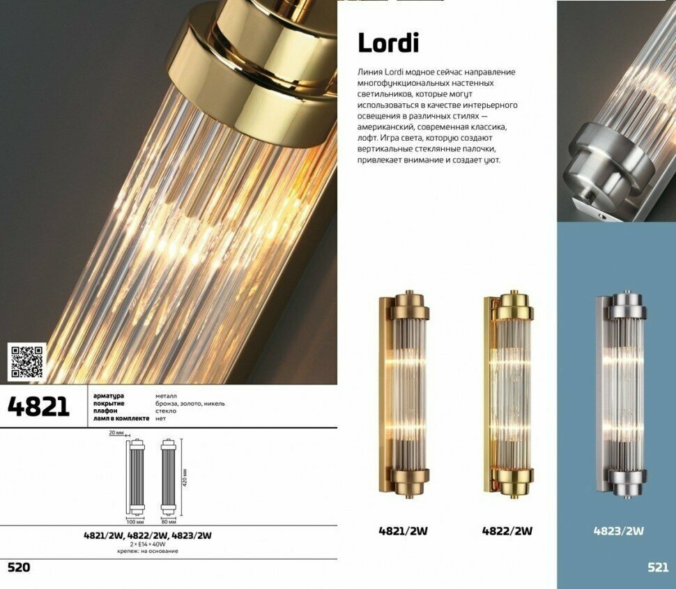 Светильник настенный Odeon Light LORDI, 4821/2W, 40W, IP20