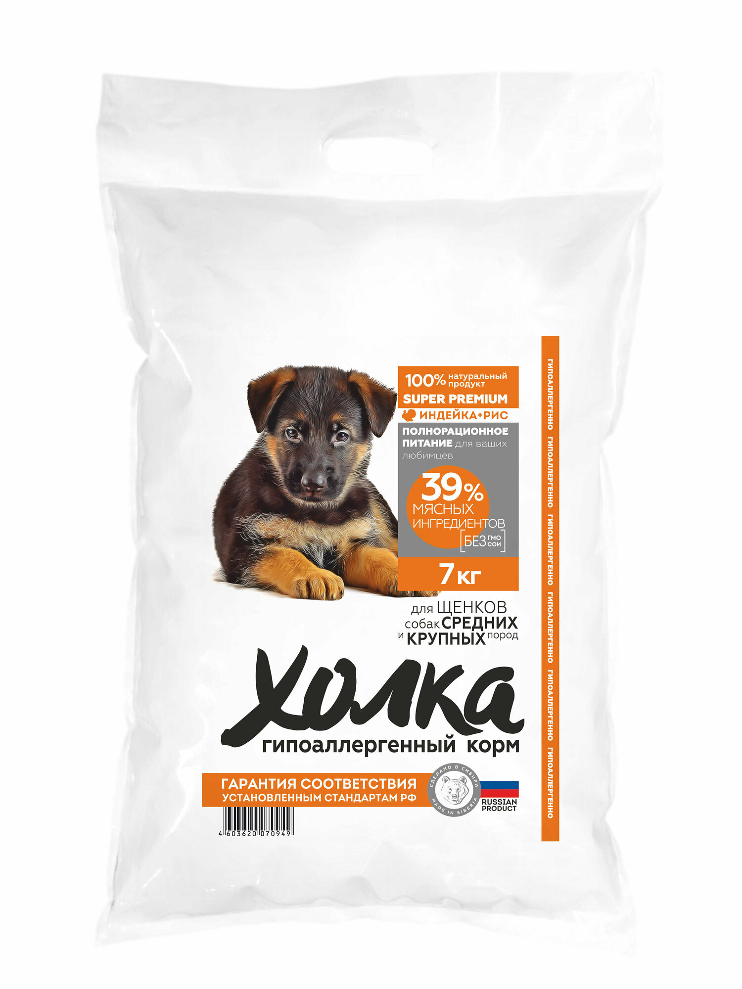 Холка гипоаллергенный сухой корм для щенков средних и крупных пород с индейкой и рисом - 7 кг