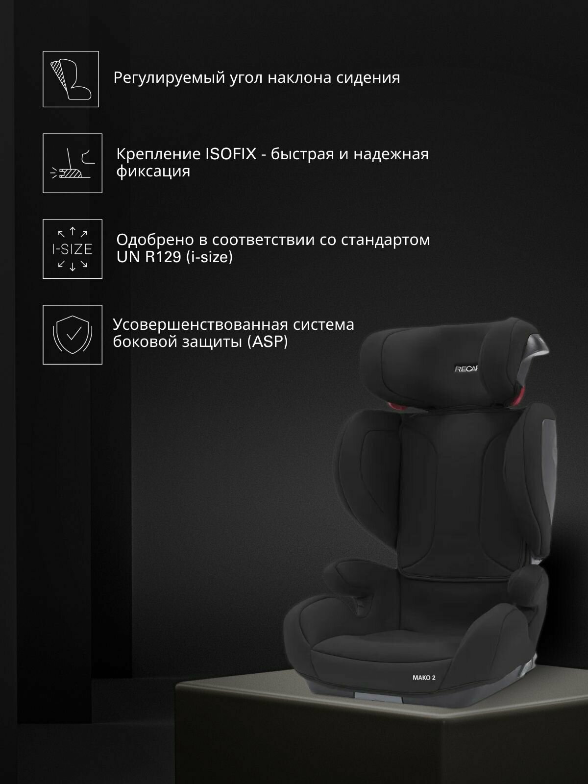 Детское автокресло Recaro Mako Core 2, группа 2-3 (от 15 до 36 кг), цвет Deep Black