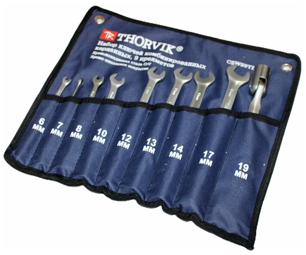 THORVIK CSWS9TB Набор ключей гаечных комбинированных карданных в сумке, 6-19 мм, 9 предметов CSWS9TB THORVIK