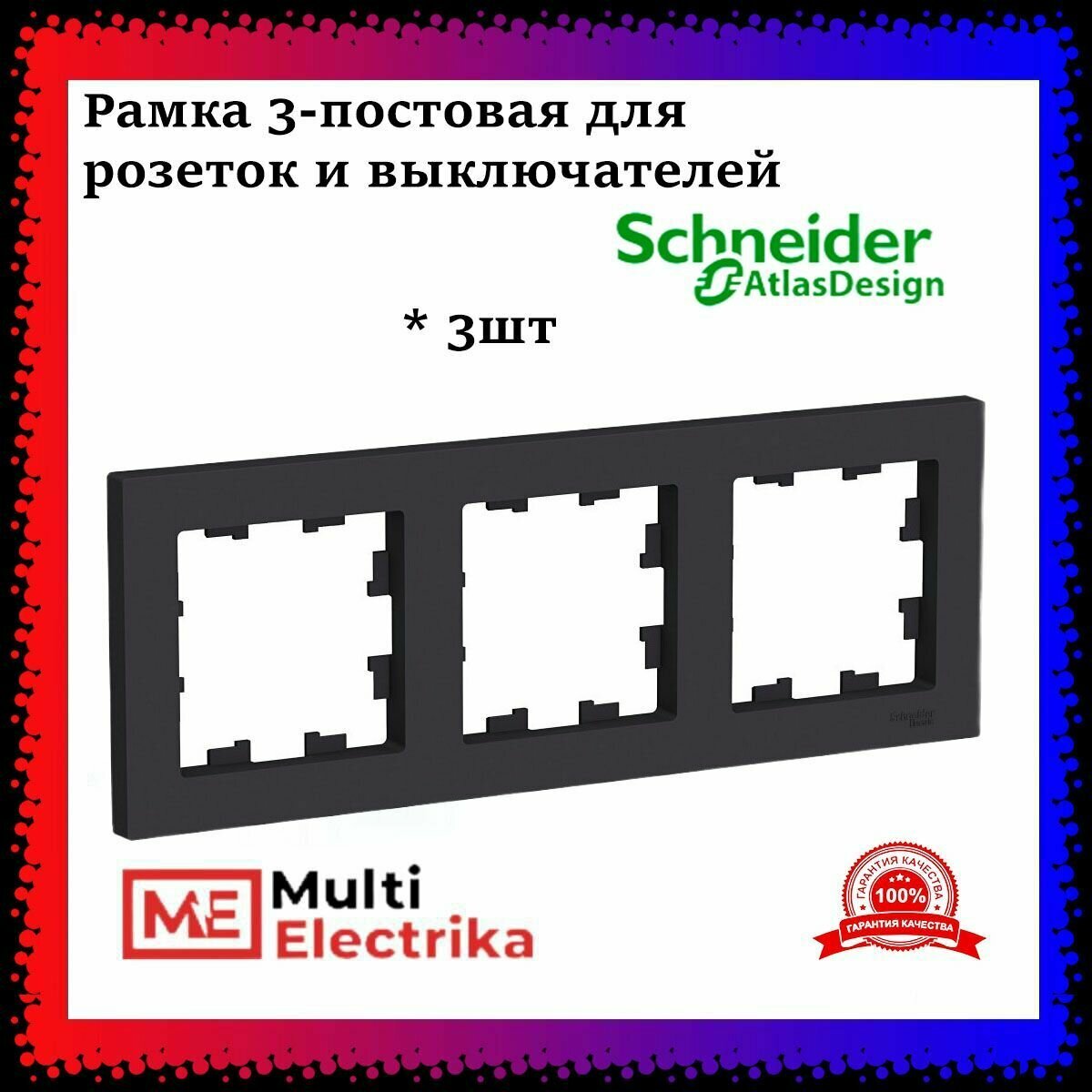 Рамка 3-постовая для розеток и выключателей Черная (Карбон) AtlasDesign (Атлас Дизайн) Schneider Electric ATN001003 7шт