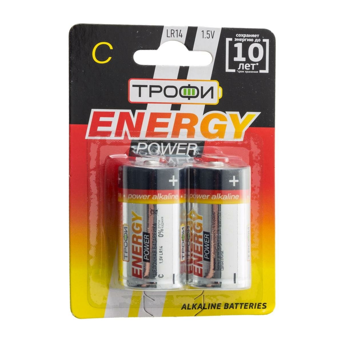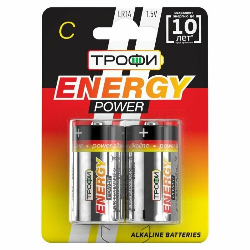 Батарейки LR14 тип C щелочные алкалиновые Трофи LR14-2BL ENERGY POWER Alkaline для сигнализации, радио рации, фонаря, игрушек / Элементы питания 1.5 В 6700 мАч 2 штуки