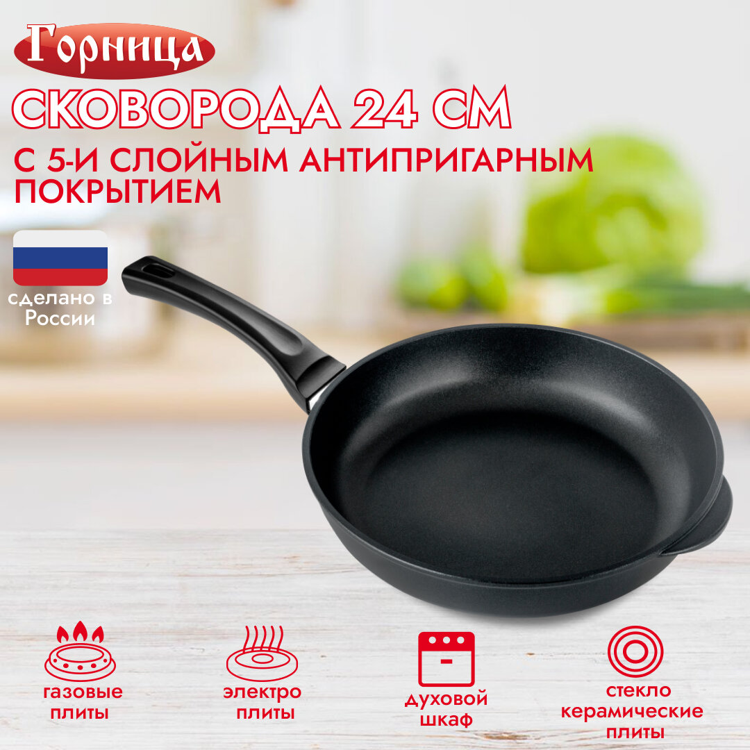 Сковорода серия "Классик" диаметр 24 см высота 5,5 см с пластиковой несъемной ручкой без крышки антипригарное покрытие интересное: