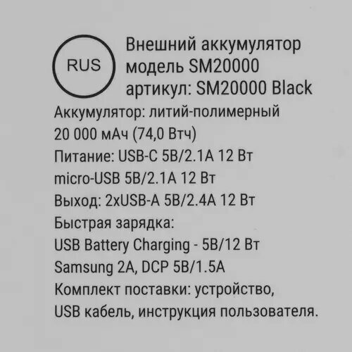 Портативный аккумулятор (Powerbank) HIPER SM20000 (SM20000 BLACK)