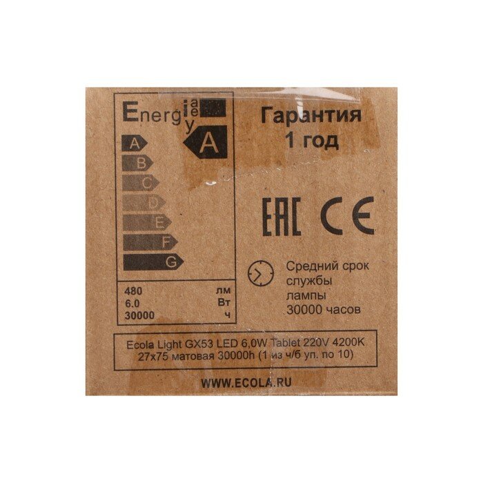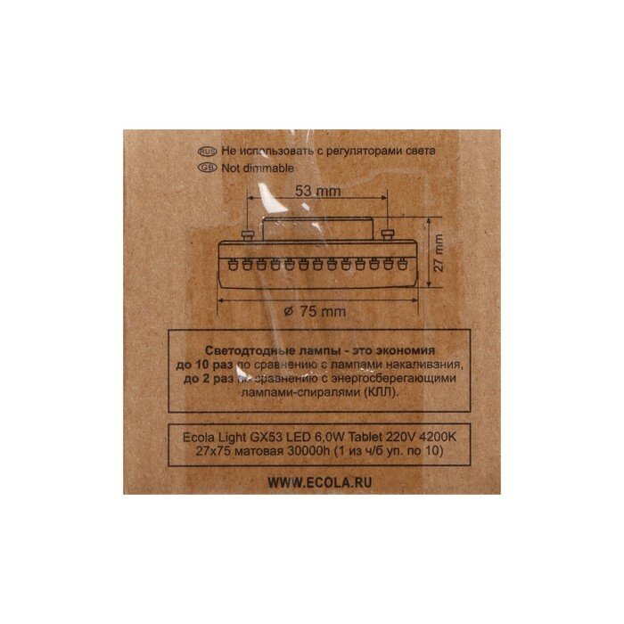 Светодиодные лампы GX53 Ecola Лампа светодиодная Ecola Light GX53 LED 6,0W Tablet Пром Упак 4200K 27x75 матовое стекло 30000h T5DV60ELC (упаковка 5 шт)