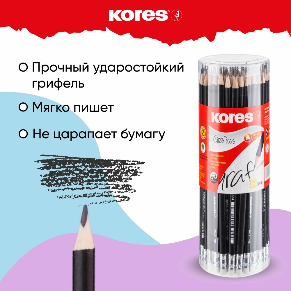 Kores Набор чернографитных карандашей HB заточенные с ластиком 72 шт.