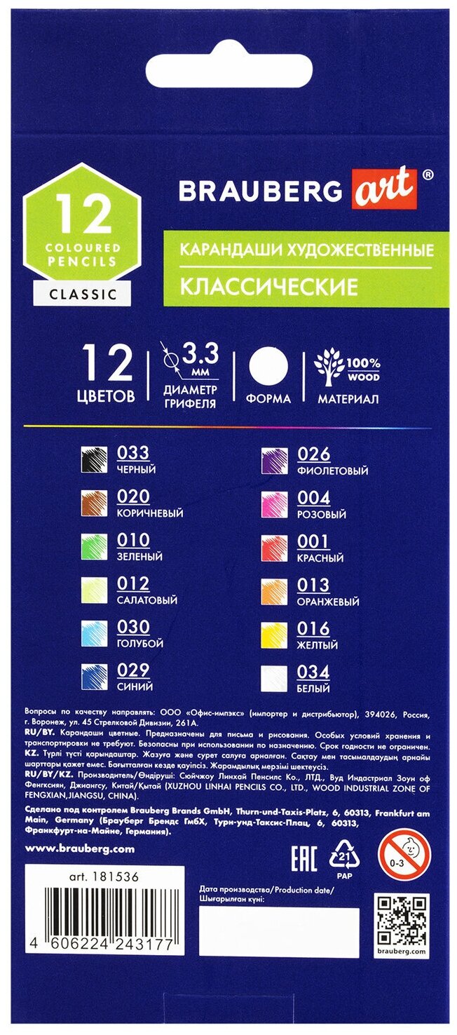 Карандаши художественные цветные BRAUBERG ART CLASSIC, 12 цветов, мягкий грифель 3.3 мм, 181536 интересное: