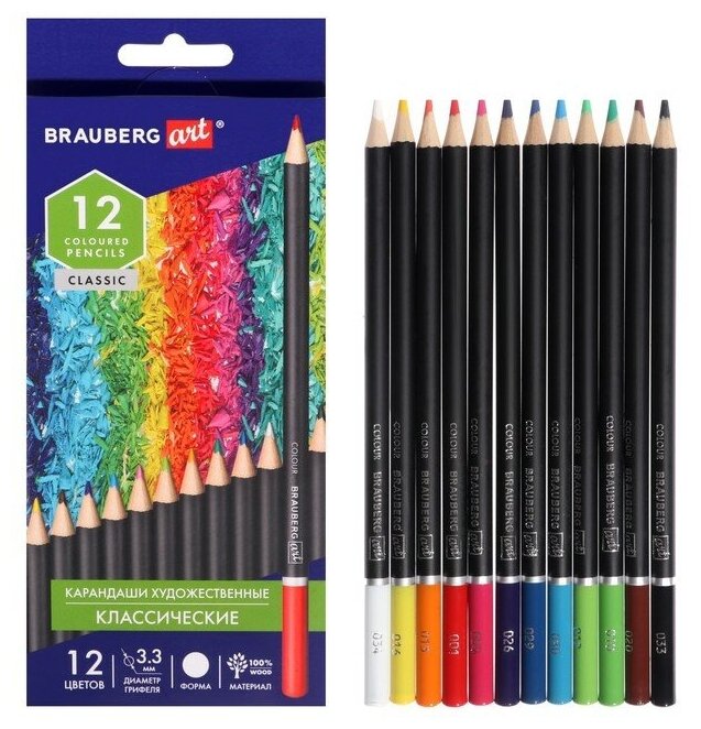 Купить Карандаши художественные цветные BRAUBERG ART CLASSIC, 12 цветов, мягкий грифель 3.3 мм, 181536