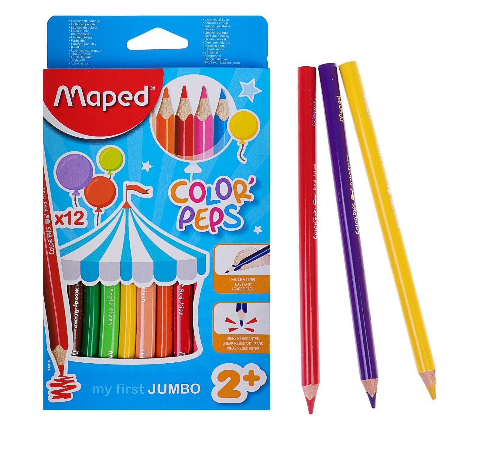 Купить Карандаши цветные MAPED COLOR PEPS макси , треугольные, ударопрочный грифель, в картонном футляре, 12 цв