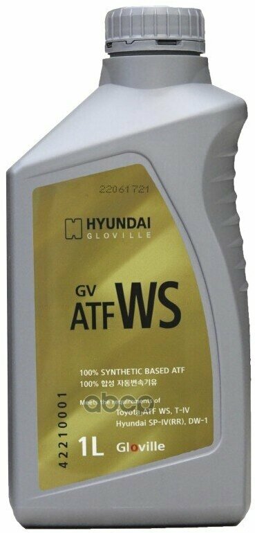 Масло Трансмиссионное Gv Atf Ws 1Л. HYUNDAI Gloville арт. 42210001