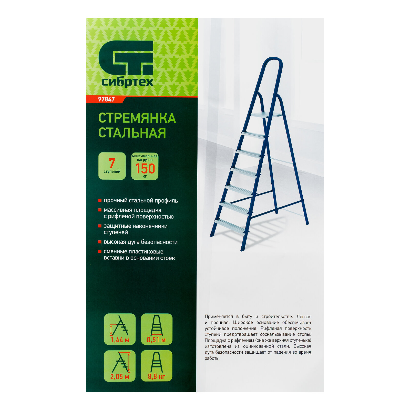 Сибртех Стремянка, 7 ступеней, стальная // Сибртех // Pоссия 97847 97847 .