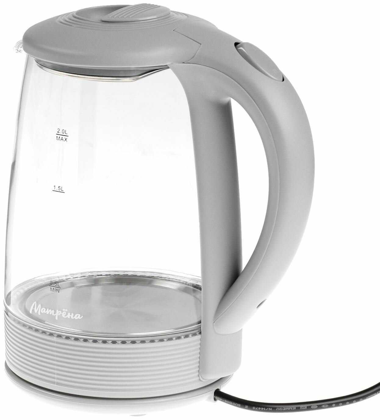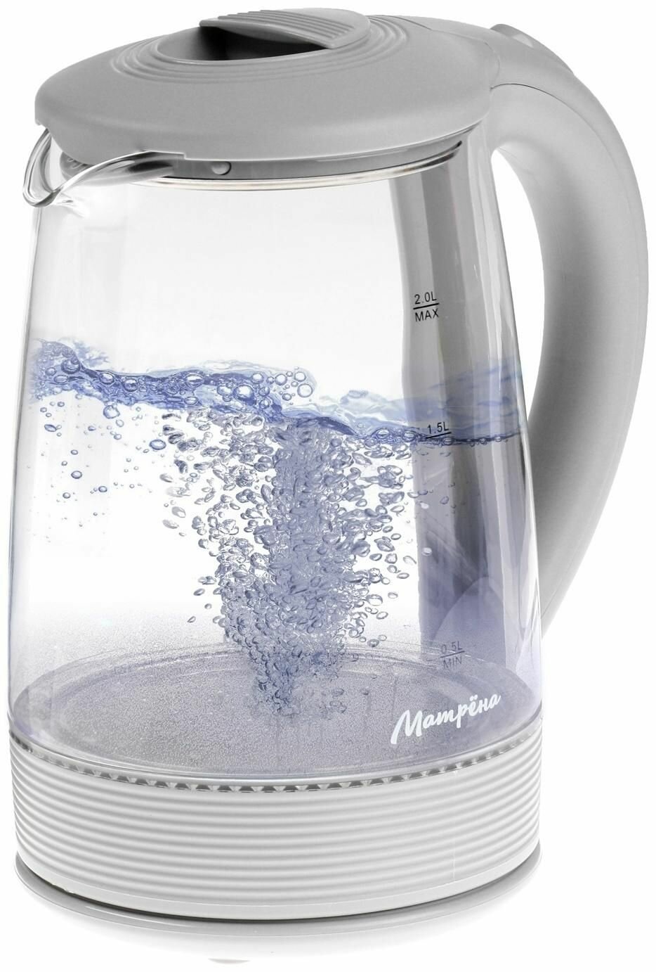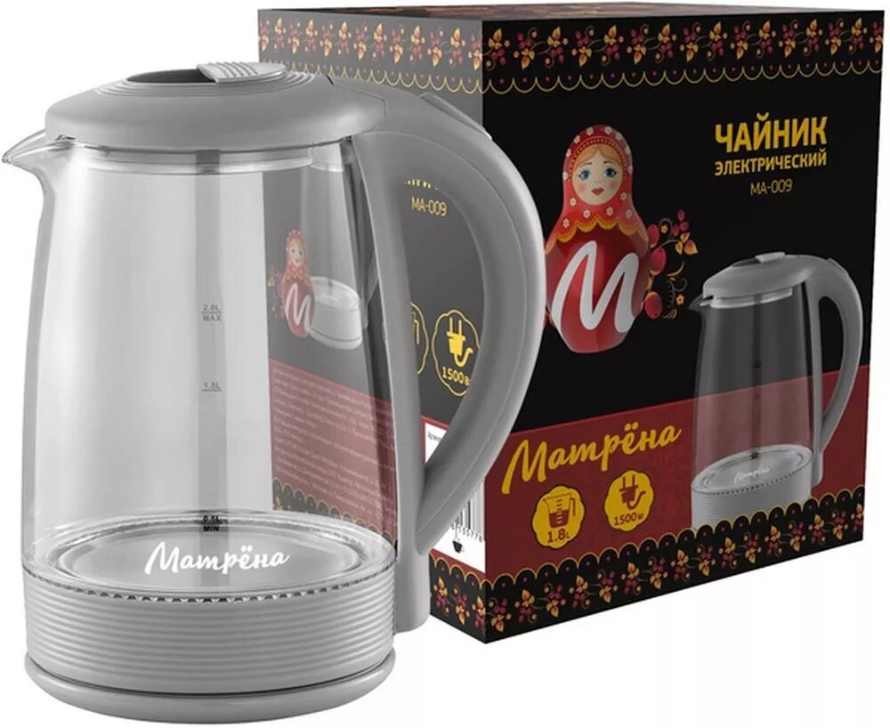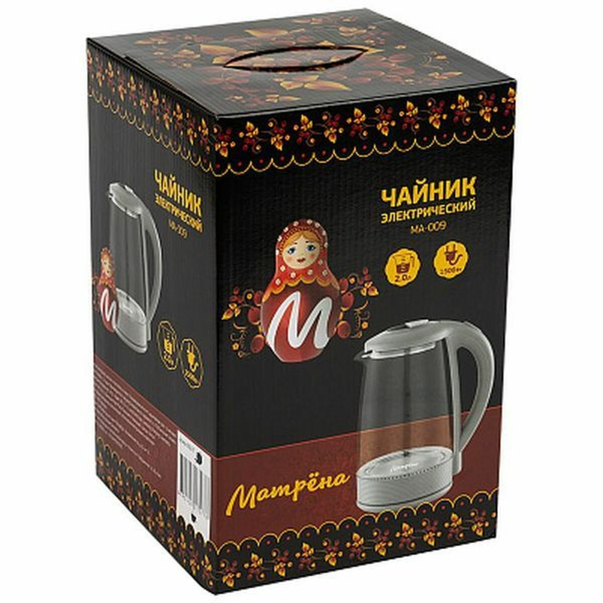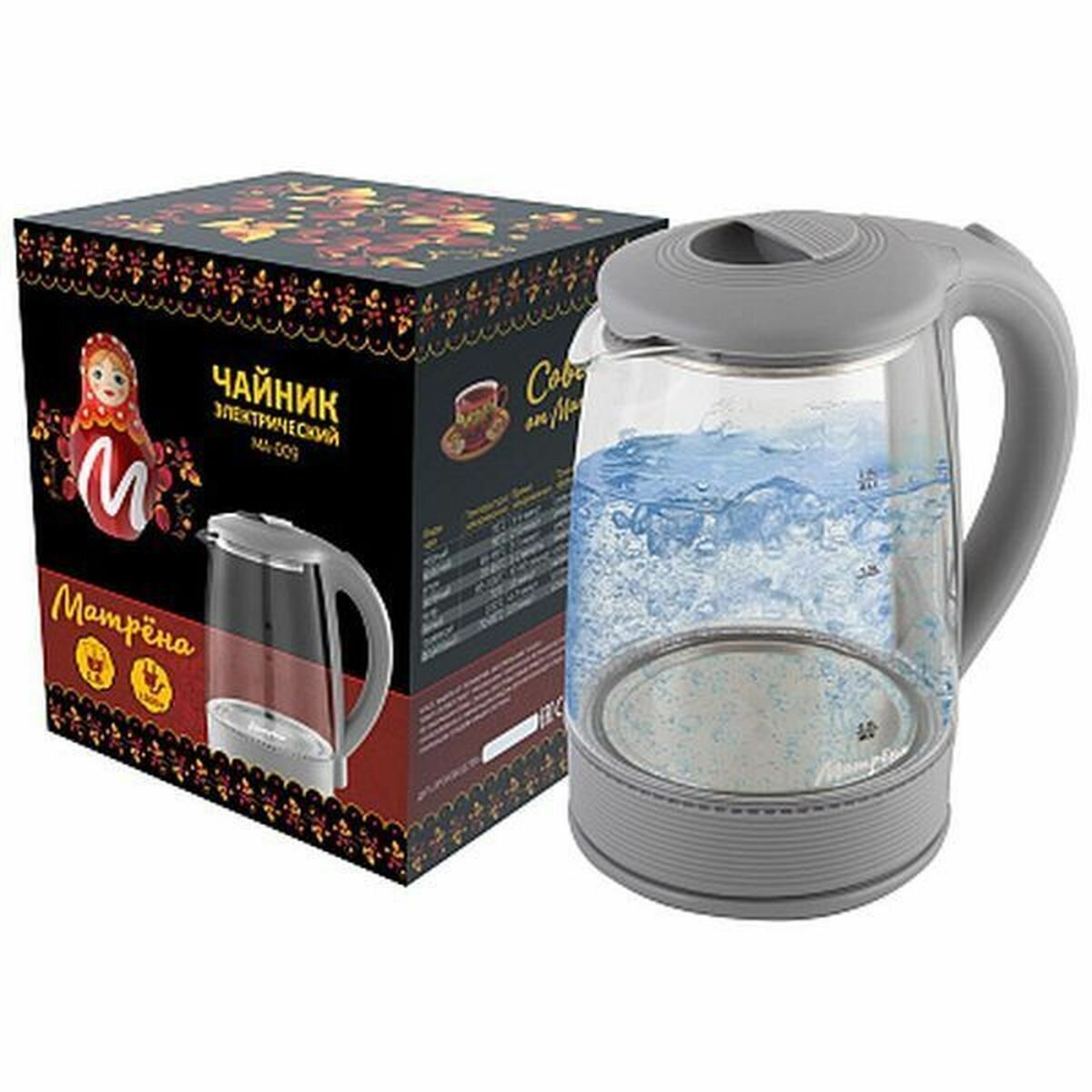 Матрёна Чайник электрический "матрёна" MA-009, стекло, 2 л, 1500 Вт, серый