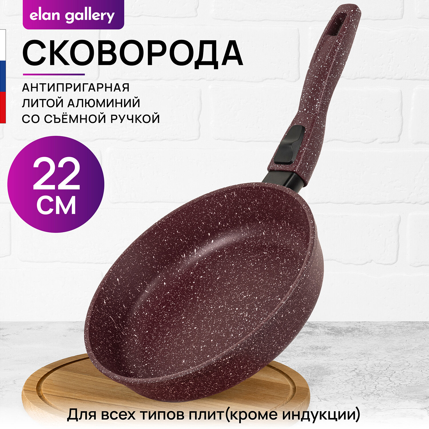 Сковорода глубокая 22 см Elan Gallery гармония вкуса Рубин, со съёмной ручкой интересное: