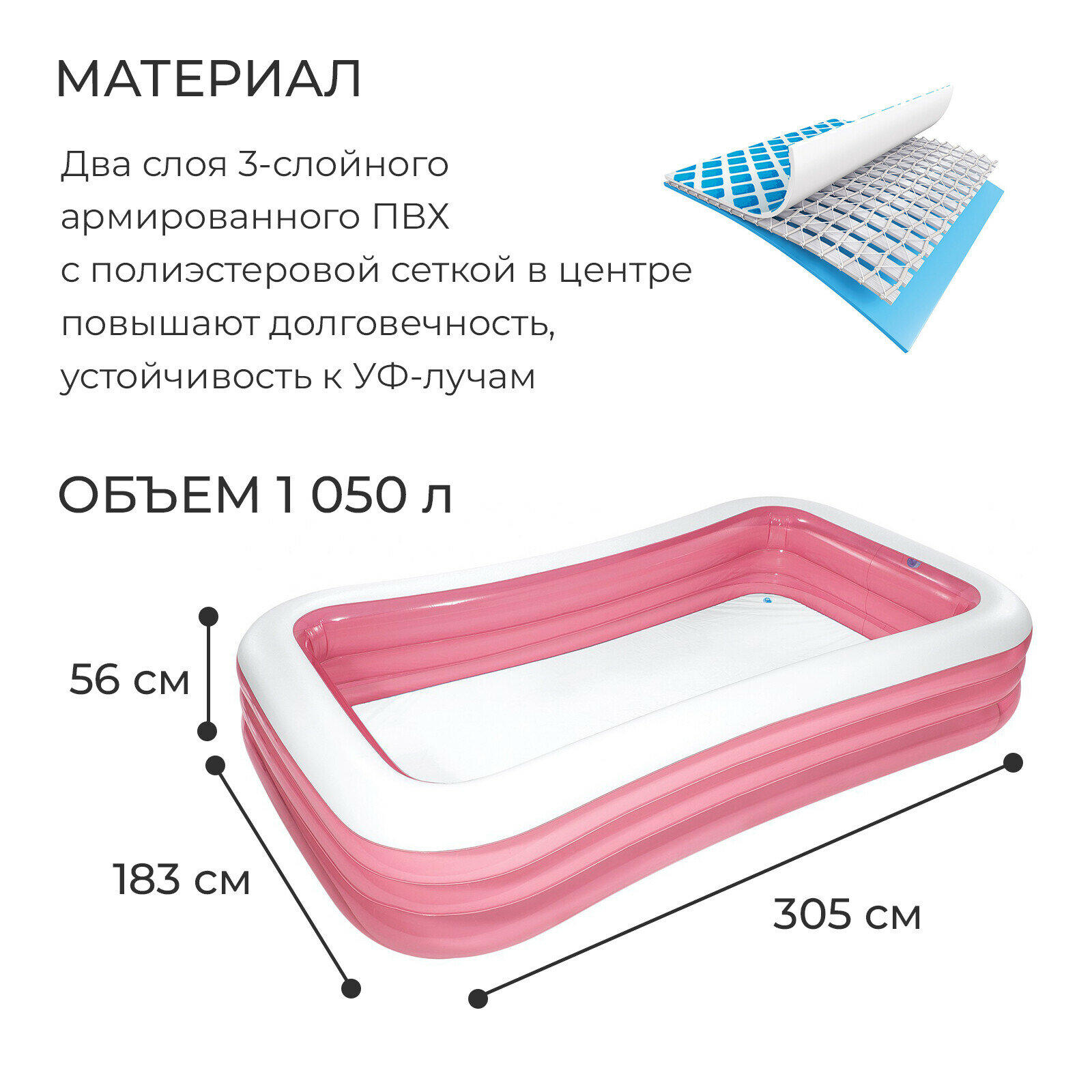 58487NP Бассейн надувной прямоугольный "Семейный", 305x183x56см